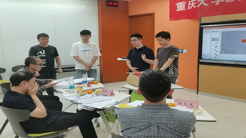 本次竞赛评委阵容采取线上线下结合之法,现场有坐镇的重庆大学李夔宁、焦斌权、刘元元三位老师,且通过视频连线,长沙理工大学赵斌、山东大学辛公明、浙江大学俞自涛三位老师远程参与评比,能源与动力工程学院冉景煜老师亦到场开展工作指导。