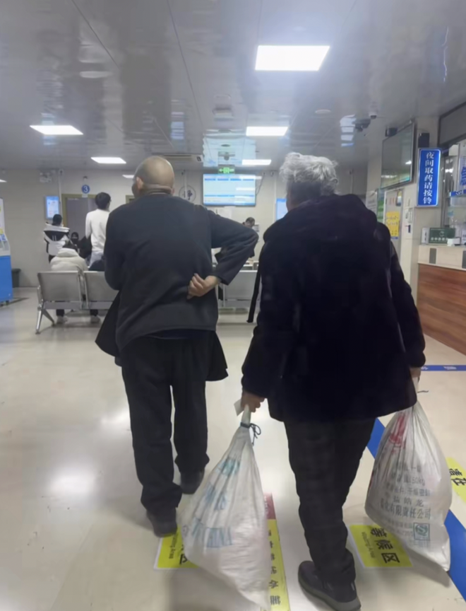 网友于是决定带两位老人去医院,经过沟通得知,老人腰痛,经别人推荐从河南坐了一天高铁过来的,就带了一张纸条、几张证件和两个袋子。