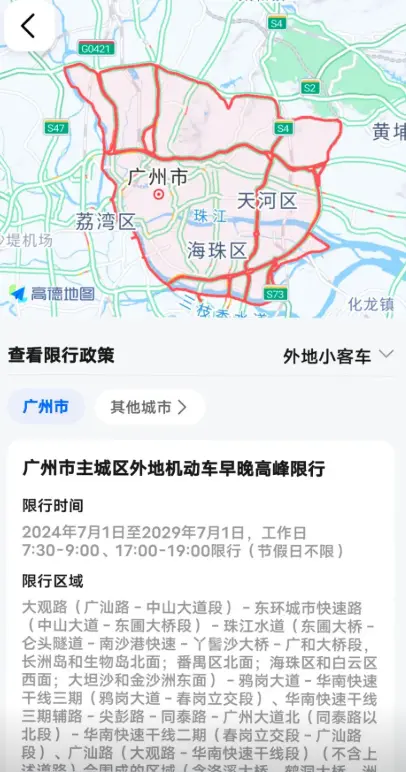 去到外面之前,运用导航软件去规划一下所走的路线,这样能够直接躲开有限制通行规定的路段。包含高德地图、百度地图在内的软件,都可以支持在其中输入车辆牌照号码,进而自动辨别出有限制通行的规则,还能够推荐出可以用来绕过限行路段的路线。在“广州交警”微信公众号这个平台里,能够寻找到“开四停四小助手”这样一个小程序,虽然相关政策已经进行了调整,但是查询限制通行区域这种功能依旧是很好用的。