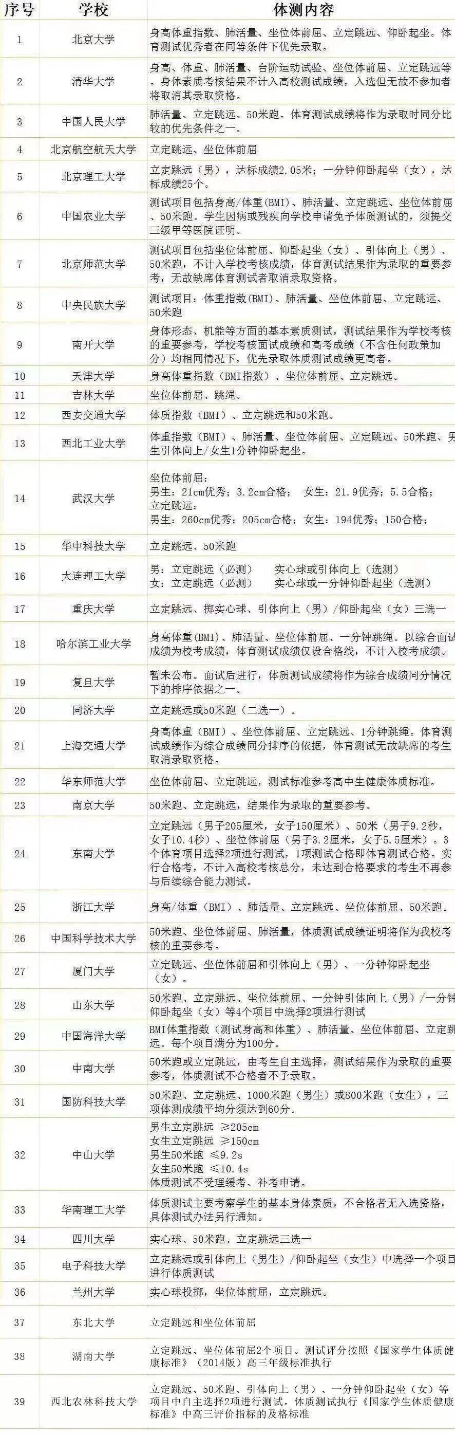 细致地阅读目标学校所颁布的招生简章 ,39 所高校的体测项目以及标准并非全然相同 ,存在部分考两项的情况 ,存在部分考四项的情形 ,存在部分为自选项目的状况 ,存在些是固定项目的态势 ,务必得看清自己所报考的学校考查的是什么 ,切莫练偏了。其次 ,预先开好医院开具的证明 ,要是身体确实存有特殊状况,尽早前往医院进行检查 ,将所需的证明材料准备妥当 ,别等到临近体测了才仓促地去办理。