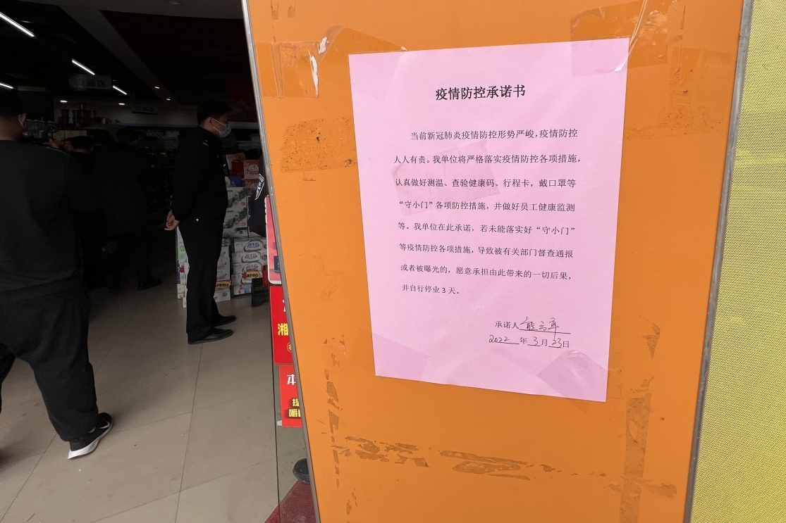 这并非此家超市头一回因防疫相关问题而被予以查处,据知悉,在先前那次检查期间,惠全生活超市曾缘防疫举措未达标准,被责令停业三天,彼时,超市负责人还签具了疫情防控承诺书,承诺会严谨落实各项防疫措施。