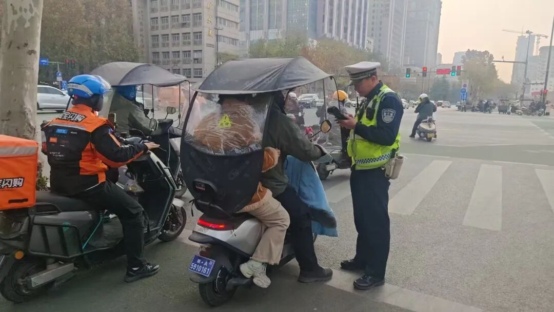 12月9日,早高峰结束之后,交管碑林大队文艺路中队,在南稍门十字周边,开展了电动自行车违法载人专项治理,民警针对非机动车违法载人,不按规定车道行驶,不戴头盔等行为,进行现场纠正和查处,这些看似微小的违法行为,常常是引发交通事故的直接缘由。