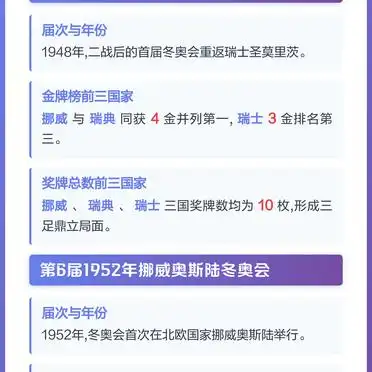 1948年,在瑞士圣莫里茨举办了冬奥会,这是二战结束后的首届冬奥会,挪威与瑞典都拿到了4枚金牌,并列在奖牌榜首位,东道主瑞士以3金紧跟其后,更为少见的是,这三个国家的总奖牌数都是10枚,形成了冬奥会历史上少见的均衡态势,这一结果显示欧洲传统冰雪强国在战后快速恢复竞技水平。