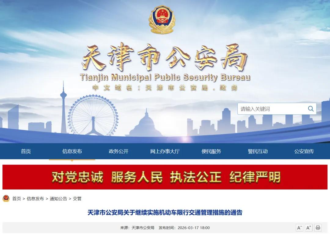 按照天津市公安局于3月17日公布的通告可知,如果将年度进行划分,那么全年会被分割成四个时段,每个时段大概为三个月,限行的尾号每隔其中一个时段就会更替一回,此次限行举措从2026年3月30日起一直延续至2027年3月28日。