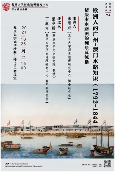 在10月26日的下午时分,禹贡青年讲座的第94场,于复旦大学枫林校区的治道楼八楼的会议室开展举行,主讲人是有着博士身份的朱思成,其讲座题目为“欧洲人的广州 - 澳门水路知识(1792 - 1844)”,他对18世纪末一直到19世纪中期这段时间里,欧洲人有关珠江三角洲水路的认知演变,进行了细致的梳理,他借助对大量历史地图以及航海日志展开分析,从而揭示出了当时中西交通的地理知识传播路径。