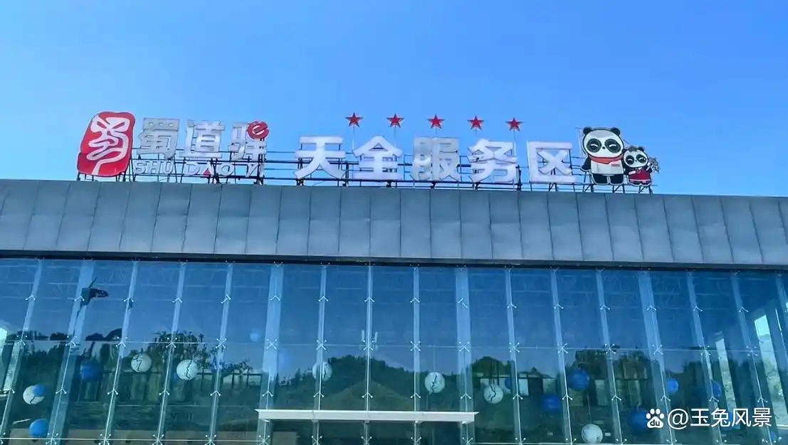 川藏线318国道的起点是天全服务区,其主打“熊猫故乡”主题,广场中央立着巨型熊猫雕塑,藏式建筑风格与彩色经幡营造出浓厚的民族风情,服务区内有自驾装备商店,能补充氧气瓶、防滑链等进藏必需品。