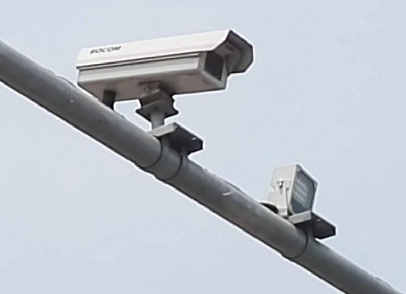 高速公路上,除圆形摄像头外,最常出现的是闪光灯与摄像头的组合,这类设备一般装在横跨道路的龙门架,或者路侧的高杆上,且每隔一段距离便有一个,当你驾车经过时,闪光灯会突然闪一下,那便是它在记录你的车速。