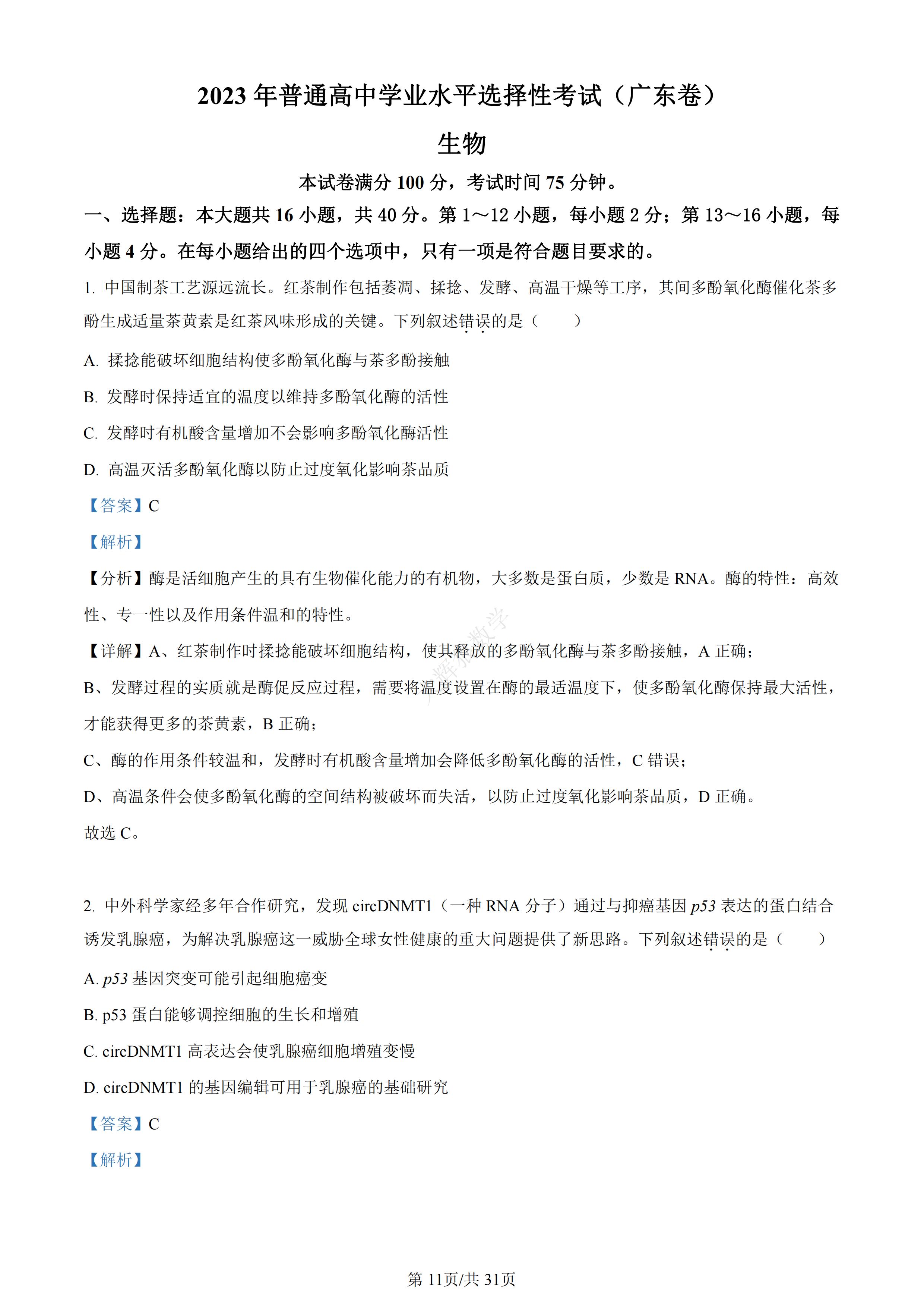 试卷之中,差不多每一道选择题都裹着“情境”的外衣,第1题所考查的是红茶的制作工艺,其直接关联到必修一里的酶的知识,第2题是从乳腺癌方面切入,将细胞癌变、基因突变这些抽象的概念拉到了医学前沿,这样的考法,在2023年6月广东高考的现场,让不少考生留下了深刻的印象,其要求你并非只是死记硬背,而是能够在具体的场景之中调用知识。