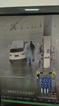 è§é¢ä¸å¯ä»¥çå°ï¼ä¸è¾æªæ¬ææ£å¼çç §çSUV汽车驶è¿å æ²¹ç«ï¼å¯é©¾é©¶ä¸æ¥ä¸æ´çå£ç½©çç·åï¼å 满油åï¼å·¥ä½äººåæ§å¥½å æ²¹çï¼è¿ç¨ä¸æ´å£ç½©ç·å夿¬¡çåå æ²¹è¡¨ï¼å¨å·¥ä½äººååç¥æ¶ï¼è½¦è¾å°¾ç¯çªç¶äº®èµ·ï¼ç似主驾驶åå¨è½¦è¾ï¼ï¼è¿æ¶æ´å£ç½©ç·åä¸å æ²¹ç«å·¥ä½äººå交è°äºå å¥ï¼éåç¼æ ¢å车è¾å¯é©¾é©¶ä½èµ°å»ï¼æ¤æ¶å·¥ä½äººåæªåºç°è¦æï¼è¿å¨æ¦æå æ²¹æªã