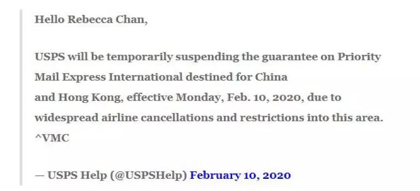2月11日,美联社报道美国邮政暂停接收寄往中国的包裹,其中还提到,合作航司均停飞前往中国的航线;美国航空已将停飞时间延长至4月24日,这是致使全球物流受阻的根本缘由。