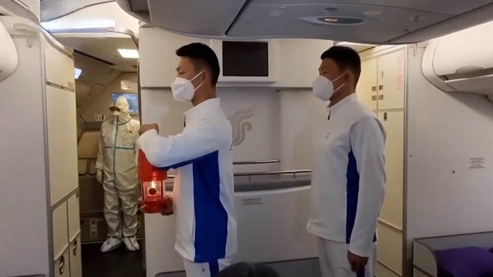 火种在雅典的帕纳辛奈科体育场,为希腊奥委会正式移交给北京冬奥组委,交接完后,火种放到小心翼翼特制好的火种灯里,由北京冬奥组委代表团带着,跨越山海,最终安全到达北京。