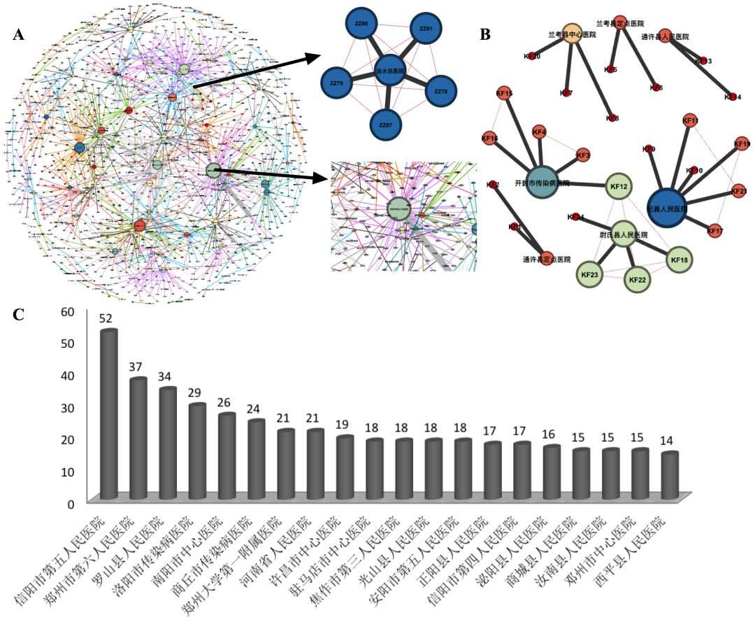 病例就诊所处的医院分布呈现出相当高度的集中态势,此集中主要是在各地的市级定点医院以及传染病专科医院这两个方面。比如说,郑州市第六人民医院在当地接收了数量可观的患者,信阳市第五人民医院同样在当地接纳了众多的患者。