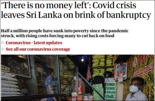 处于疫情状况之下,南亚的那个岛国斯里兰卡,正面临着经济走向崩溃的那种危险境地,普通的家庭就连一日里的三餐都难以维持下去。