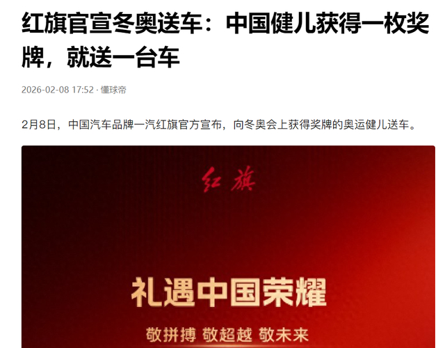 在这一届冬奥会举办之前,有一家国产的汽车企业公布了清晰明确的奖励计划,那就是当每一次有五星红旗被升腾起来的时候,就会给获得奖项的运动员送上一台红旗品牌的轿车。咱们中国的代表团总共让国旗升起了十五回,因为团体项目是涉及到好多人的,所以实际上赠送出去的车辆数目将会比十五台还要多。