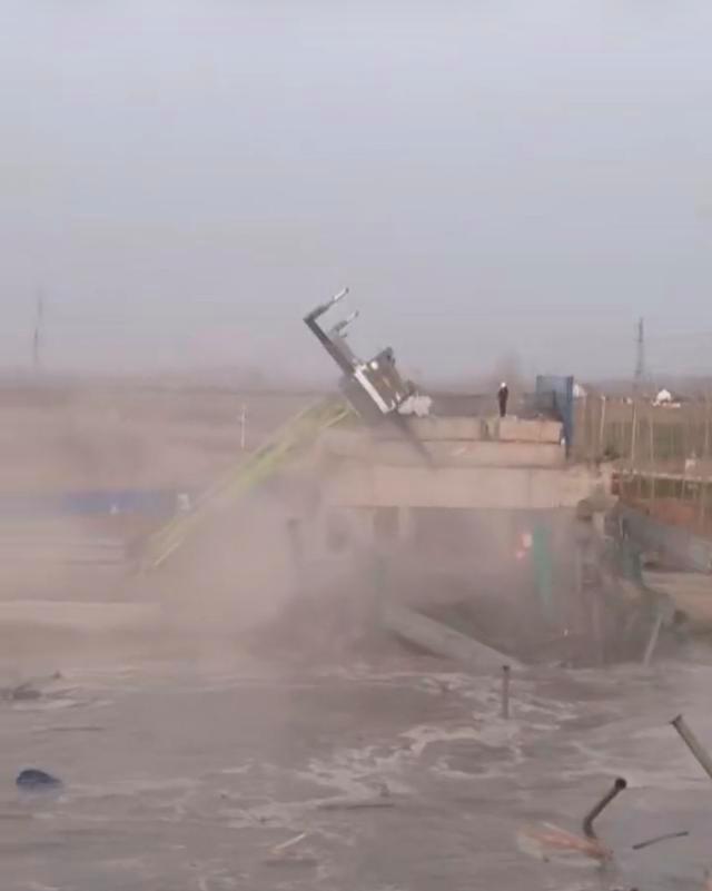 江苏响水月港大桥大桥塌落瞬间(视频截图)