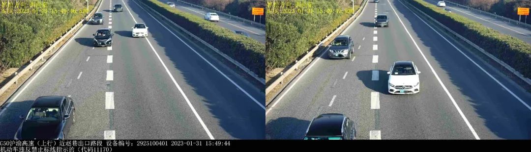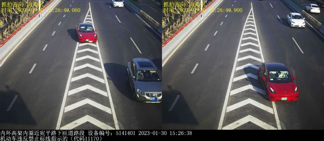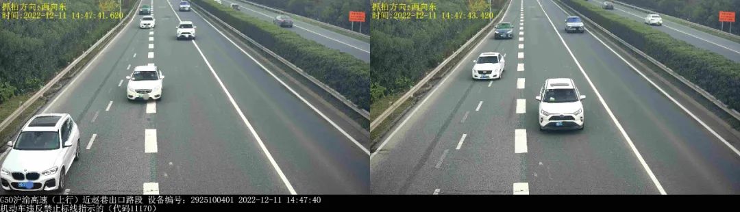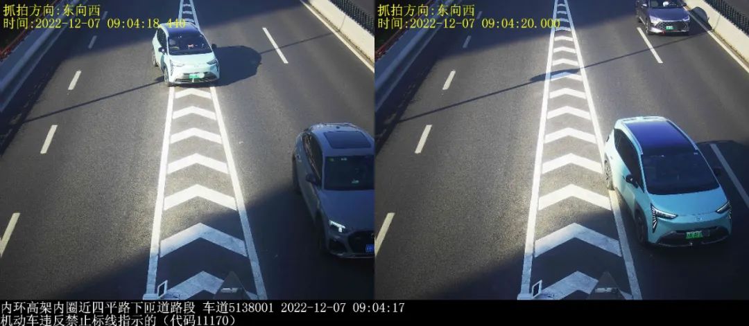 有众多驾驶员辩解称,自身压实线是源于“快错过出口了”,以及“导航播报太晚”。然而法律并不考量理由,唯看行为。拿 G50 沪渝高速赵巷出口来说,沪 DPU 与沪 ETA 两车在不同时间于同一地点违法,这表明此路段确实容易走错路。但正确的做法是,一旦发觉即将错过出口,就要保持在原车道继续前行直至下一个出口,多花费十分钟绕回来,这远比冒险变道安全而且省钱哟。
