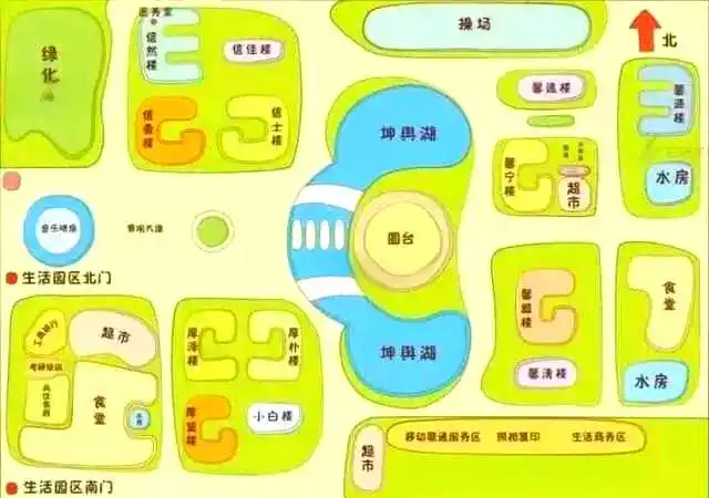 一片区域集中着宿舍楼的生活区,是未来几年你待得长久的所在,尽管当下不知会分到哪一栋,然而整个生活区环境相对宁静,距离食堂不远,离热水房也不远,日常起居便利性得以保障。