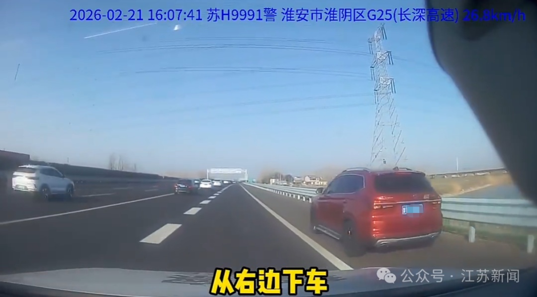 车是停下了,可危险没消除。车子停在高速路上,最担心的就是后面的车追尾。交警在电话里讲了个特关键的警示:“绝对不能开左边的车门!所有的人要从右边下车,赶紧撤到护栏外面 ,留意观察后面过来的车!”。