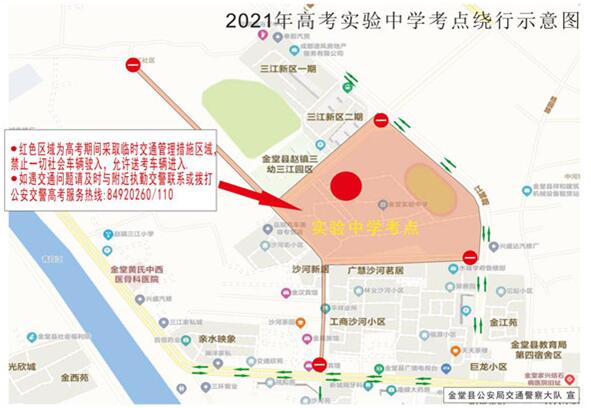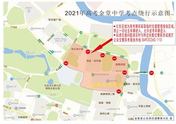 棠湖中学实验学校考点会于在城北街航都大街路口至城北街航园路口的地段,施行实施管制操作,此路口那儿设置有“高考考场车辆禁行”的指示牌。重型货运车辆要留意注意啦,双楠大道花园路口以及涧槽街口设有分流点。