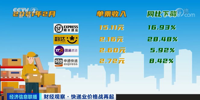 别觉得价格战仅仅会对小公司产生影响,排名靠前的快递企业他们的状况同样不是好过的情形。顺丰控股在今年2月的时候,那每单收入降低到了15.11元,相较于去年而言下降幅度将近17%。韵达的情况更为糟糕,其每单收入仅仅只有2.16元,下跌幅度超过了28%。圆通以及申通也没有能够避免这种局面,每单收入都在2.6元附近呈现摇摆不定的状态。中国贸促会研究院副院长赵萍作出了分析,新加入的参与者凭借低价策略去争抢市场份额,老的参与者为了能够守住既有的份额只能跟着降低价格,最终的结果就是大家全部都陷入到亏损的境地,服务必然也会跟着出现缩减的情况。