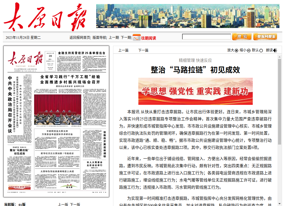 治整不能仅依赖罚,还需使众人明晰规矩究竟是啥。市政建管中心借由《太原日报》、《太原晚报》以及其自身的公众号、视频号,持续对此次专项整治行动予以宣传。他们还特地为施工单位与工人阐释《太原市城市道路管理条例》,告知大伙办理掘路证所需的材料是什么、所走的程序是怎样的。
