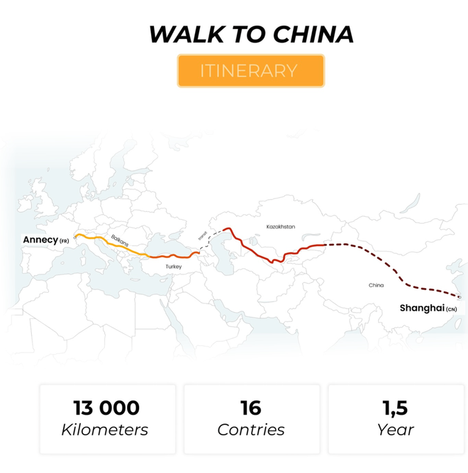 2024å¹´9æï¼ä¸¤ä¸ªå¹´è½»äººä»æ³å½å®çº³è¥¿ï¼Annecyï¼åºåï¼ç©¿è¶15个å½å®¶ï¼èµ°è¿13000å ¬éï¼äº2025å¹´9æè¿å ¥ä¸å½ï¼æç»å¨2026å¹´2ææµè¾¾ä¸æµ·ã