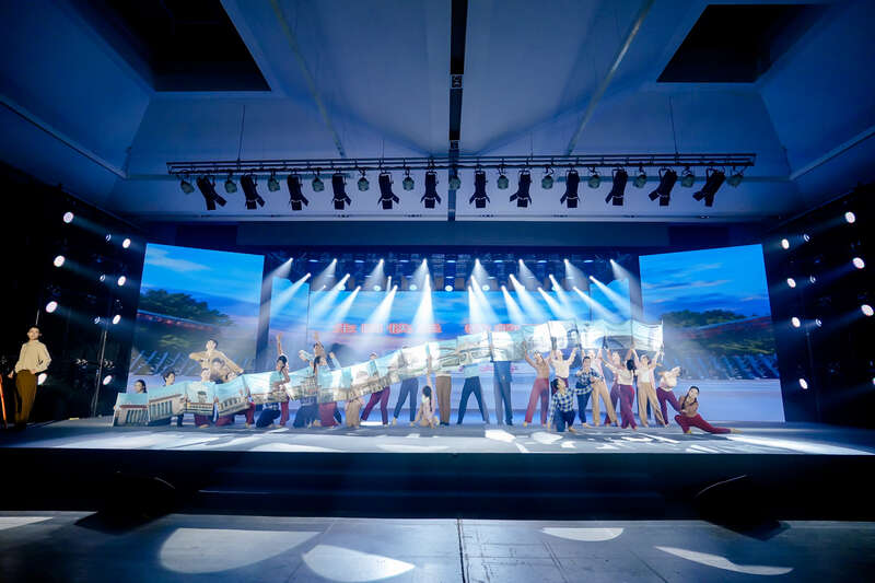 备受关注的舞蹈《梁柱年轮》,是以北京建筑大学校史作为创作背景的,舞台之上演员们借身体语言去演绎从人民大会堂主到大兴机场的建设进程,每一项动作都饱含力量,仿若实实在在地在建造起一幢幢宏伟建筑。