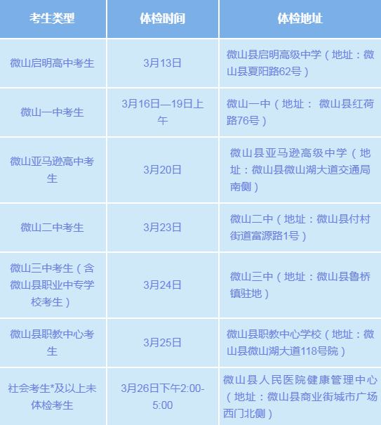 今年微山县的高考体检安排已然确定,会从3月13日开始一直持续到3月26日,时间范围并不是很长。考生一定要依据自身报名点对应的学校去参加体检,要是不清楚自己归属于哪所学校,能够通过官方所提供的二维码进行扫码查询,以此保证准确无误地按照对应的去做。