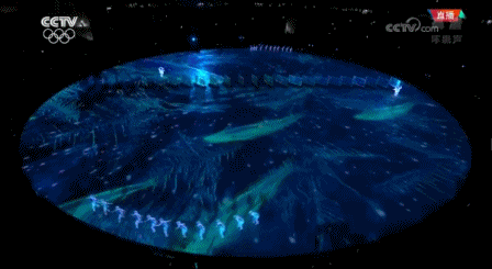 看起来像用冰雪制成的24块屏幕处在舞台上,所以被称作“冰屏”,由于这些屏幕差不多透明因循于此随着移动机器人的带动,在舞台上持续变换位置,和演员以及地面投影达成联动,屏幕里展示的是新时代中国的美好形象,这其中涉及北京冬奥会会徽“冬梦”、蔚蓝的地球、孩童的笑脸等内容。