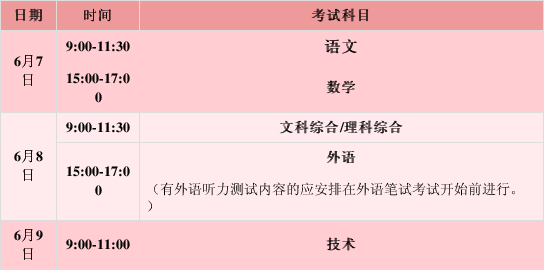 知道分数构成情况之后,考试时间同样不可疏忽大意。全国统一高考里的语文、数学、外语考试时间大体是固定的,按照黑龙江、福建等地的相关安排,一般都是在6月7日以及6月8日举行。这里面语文考试时间是最长的,长达150分钟,数学以及外语(笔试)的时间是120分钟。