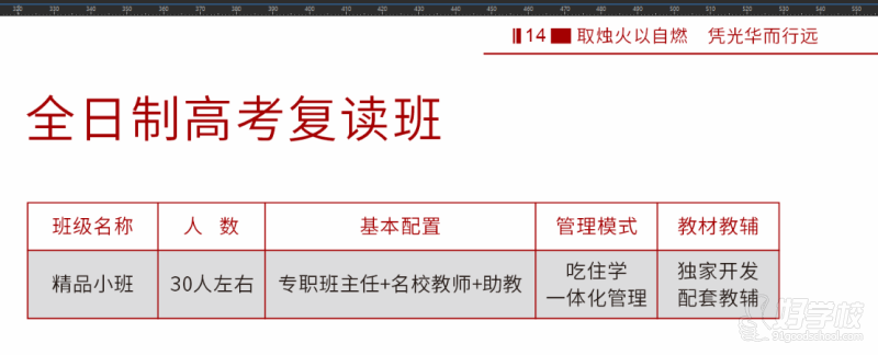 凡是教师,皆名校毕业,专业能力颇为突出,年年奋战于高三最前沿。全职教师与兼职教师搭配得当,兼具稳定性与灵活性。学校配备专任日语教师,针对英语偏科极为严重的学生,借助日语能在短时间内零基础实现高效提分。
