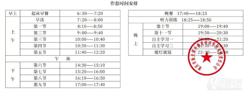 每天清晨6:50准时起床,直至晚上11:30进行查寝,在每一个时间节点,均有老师实现无缝对接。全天最少有8节正课,再加上5节自主学习探究课,班主任以及助教全程予以陪伴。助教如同保姆那般,照料每一位学生的实际需求,班主任则维持与家长、主教老师的紧密沟通。