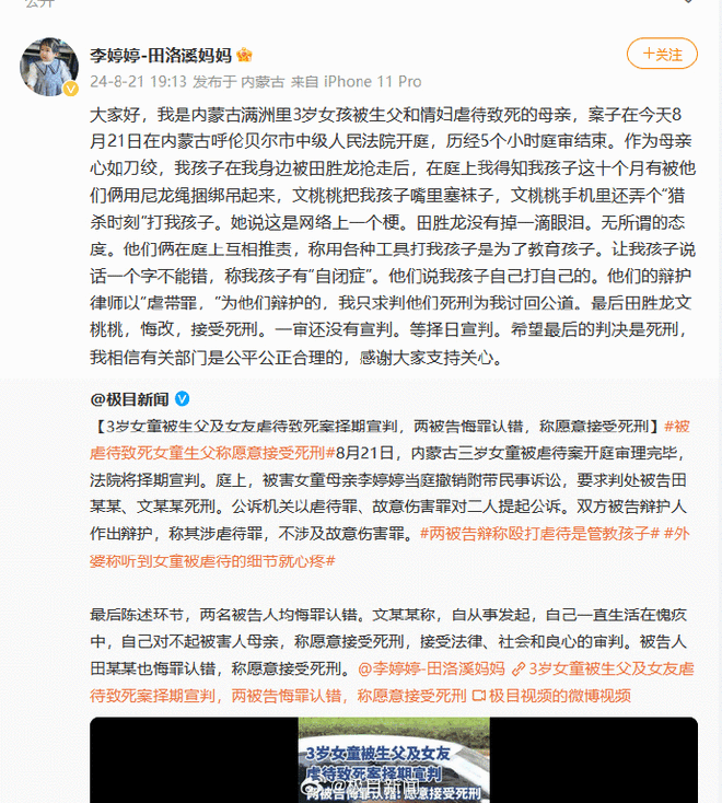 2025å¹´8æ22æ¥ï¼æ®æ¬åææ¥ï¼æ¤åå¤åå ³æ³¨çå è夿»¡æ´²é3å²å¥³ç«¥è¢«çç¶åå ¶æ 人èå¾ è´æ»ä¸æ¡æäºææ°æ¶æ¯ãè®°è ä»è¢«å®³å¥³ç«¥çæ¯æå¥³å£«å¤è·æï¼è¯¥æ¡äºå®¡ç»´æä¸å®¡åå¤å³ã