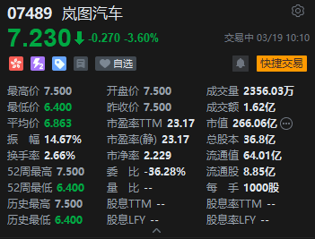 从首日交易情况看,岚图汽车股价开盘后股价下挫,触及6.4港元,截至发文,岚图汽车报7.23港元。