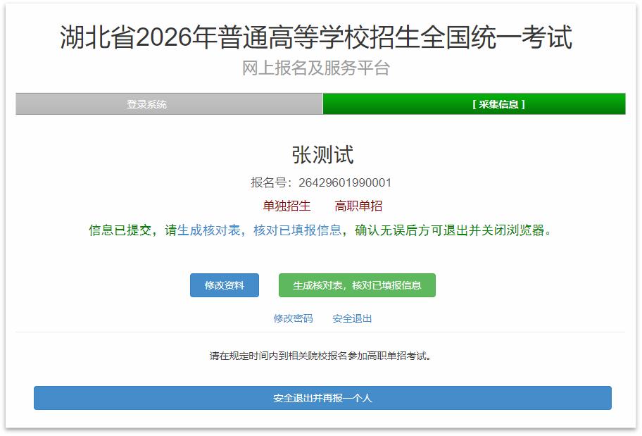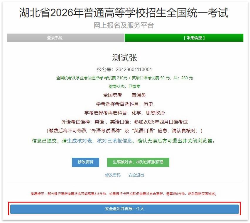 要是有多名考生借助同一台电脑去报名,那就必须得点击页面最下方的“安全退出并再报一个人”这个按钮,而绝不是直接去点浏览器的“退回”按钮。要是直接退回的话,极有可能致使上一名考生的信息残留下来,进而对下一位考生的报名数据造成不良影响。在学校机房以及网吧共用设备这种情形下,尤其得留意这一点。