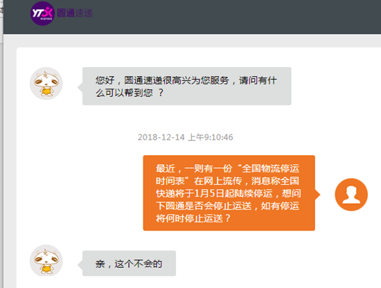 这则传闻之下,多家快递公司在第一时间给出了回应。于济宁圆通快递工作的王师傅跟记者讲的是,他所在的网点并未接到任何有关1月5日停运的一则通知,按照往年的经验来看,距离快递出现停运的情况还有相当长的一段时间。而圆通快递官网的客服也是予以确认,当下公司并没有发布停运方面的计划,要是春节期间存在运输上的调整,会借助官方网站提前去告知用户。