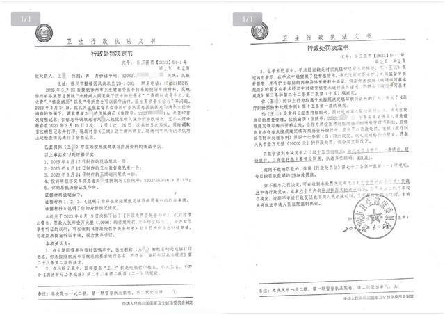2023å¹´6æï¼å¾å·å¸å«å¥å§å¯¹å½äºå»é¢åæ¶äºå»ççæååºè¡æ¿å¤ç½ãå¤ç½å³å®æç¡®ï¼æ¥æå½äºå»é¢åå»å¡äººåå卿ªæç §è§å®å¡«åç åèµæå使ç¨åç§éª¨æ¤å ¥æææªç»æ£è ç¾ç½²ç¥æ åæä¹¦çè¡ä¸ºï¼å¹¶ç¡®è®¤å ¥é¢è®°å½ä¸å ¥é¢è¯æå ±æ5次修æ¹ï¼å ¶ä¸æ3æ¬¡è¶ åºäº24å°æ¶ï¼æªæç §è§å®ä¿®æ£è¯æï¼ä¸ç¬¦åãç å书ååºæ¬è§èãç¸å ³è§å®ã对å¾å·ç¿å¡é墿»å»é¢ååºè¦åå¹¶å¤ç½30000å 人æ°å¸ï¼ä¸è¾¾ãå«ççç£æè§ä¹¦ãï¼è´£ä»¤å»é¢å 强对å»ç¨èæä¸´åºä½¿ç¨ç管çï¼è´£ä»¤ç¸å ³å»å¡äººåç«å³æ¹æ£ä¸è§èè¡ä¸ºï¼å¯¹æ¶äºå»ççæå¤ä»¥è¦åï¼ç½æ¬¾10000å 人æ°å¸çè¡æ¿å¤ç½ã