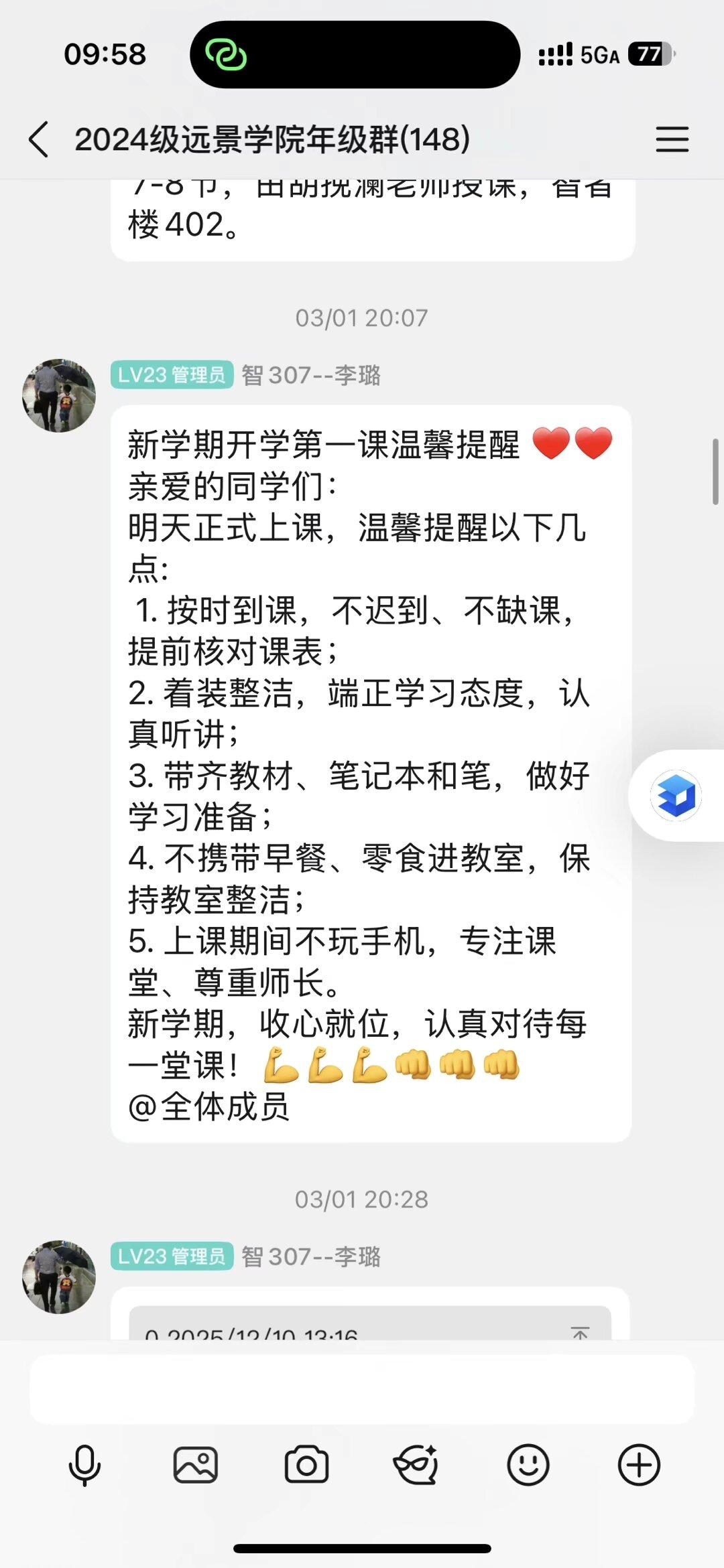 新学期开始的第一周,远景学院各个辅导员全都深入进到课堂之中,达成了听查课没有一处遗漏的情况;在2026年新学期开启的首个七天里时间内,学生到达课程的比率达到了百分之百,课堂上面的秩序处于良好的状态;听查课这件事情不是那种只做短期内的行动,而是持续不断地正常推进着,辅导员每一周都会进入到正在上课的教室,针对个别存在问题的学生马上进行谈话并且给予提醒,尽早发现以便能够尽早解决所出现的问题,以此来保证课堂上面的学习质量。