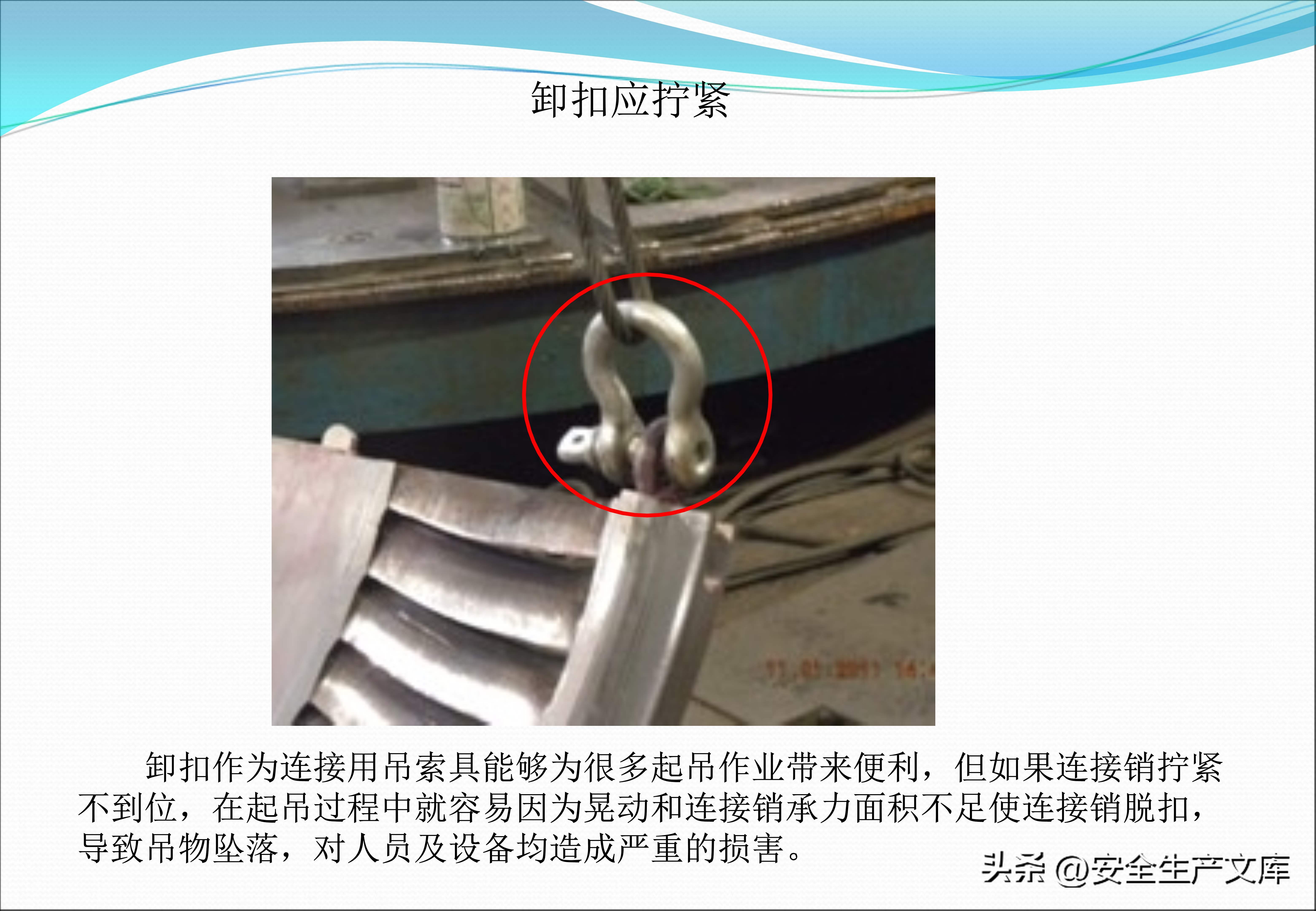 生产安全直接关联着设备设施的规范使用,课件中的图例呈现出,起重索具由于长期未曾进行探伤检查,其中的卸扣已然出现显著裂纹,随时存在断裂的可能性,图例里一个未安装回火防止器的乙炔瓶,在回火情形出现时直接引发爆炸,而乙炔瓶配备回火防止器属于气瓶管理的重点内容,设备传动装置的防护罩务必保持完好,图例中的工人手指因防护罩被拆除后未恢复,被卷入了裸露的齿轮。