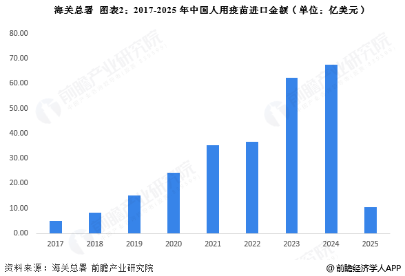 进口金额的降幅愈发令人惊叹不已,2024年时中国进口疫苗耗费67.53亿美元,然而到了2025年,此一数据急剧下跌至10.58亿美元,这表明进口疫苗的平均单价也于迅速地下降,进口疫苗的总量与总金额同时减少,这体现出国内疫苗的自给能力正处于提升之中。