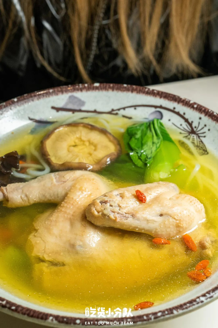 教师职工餐厅的招牌半只鸡米线近来在人民日报上火了起来,十五块钱实实在在给半只鸡,炖煮至肉肉软烂脱离骨头,鸡汤清澈如同见底却鲜味浓郁十足至极,用筷子一夹那鸡肉就从骨头上分离脱落下来,蘸着专门特制的蒜泥酱油碟享用,幸福感一下子直接拉满。