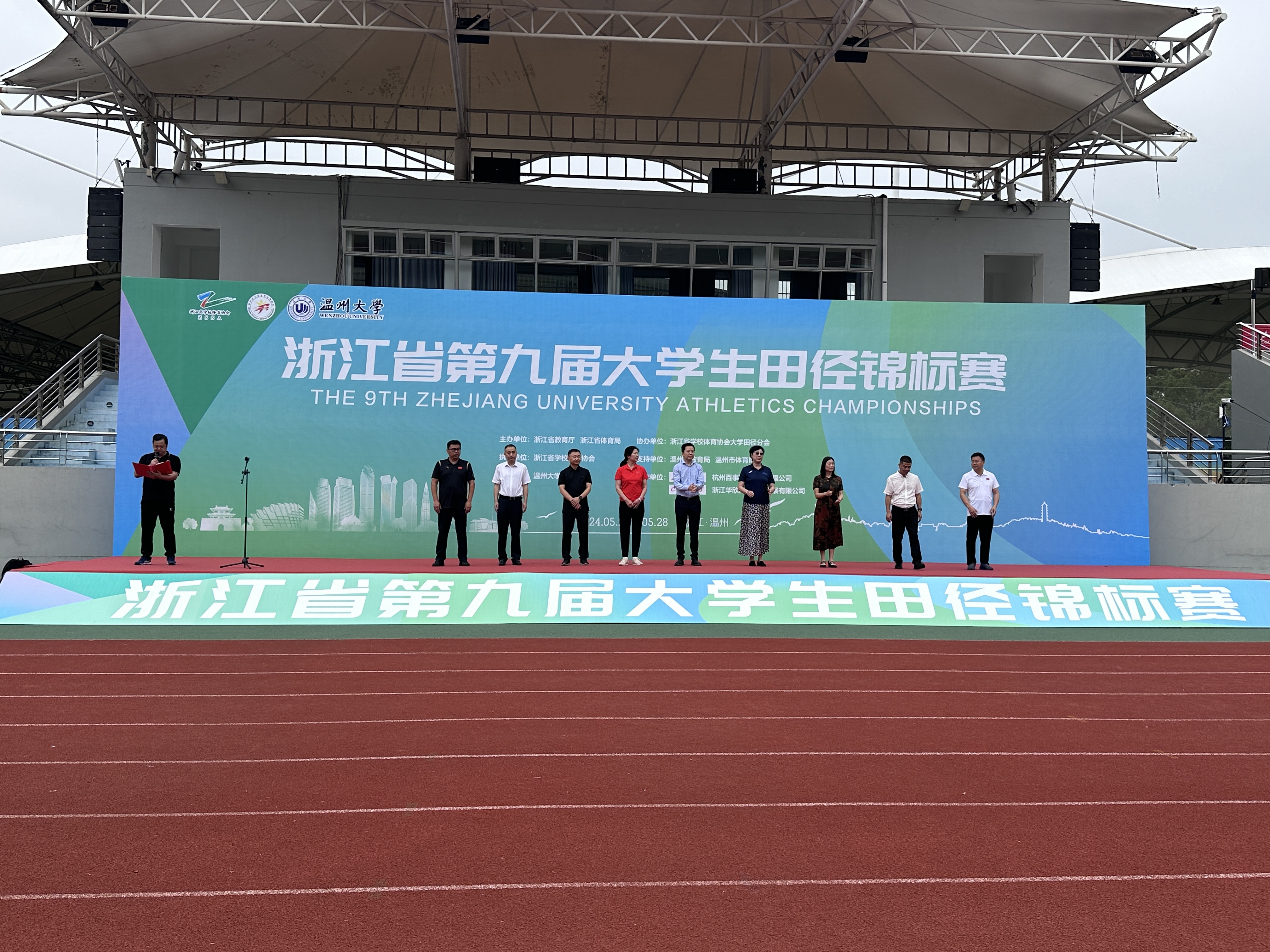 5月24日清晨8点时分,温州大学北校区的田径场摇身一变,化作了一片洋溢着欢腾氛围的海洋。激昂的音乐声中,副校长王尧骏,以及来自省教育厅、体育局和温州市的多位领导嘉宾,纷纷踱步走上主席台,一同目睹这一场全省学子满心期盼的体育盛事正式启幕。