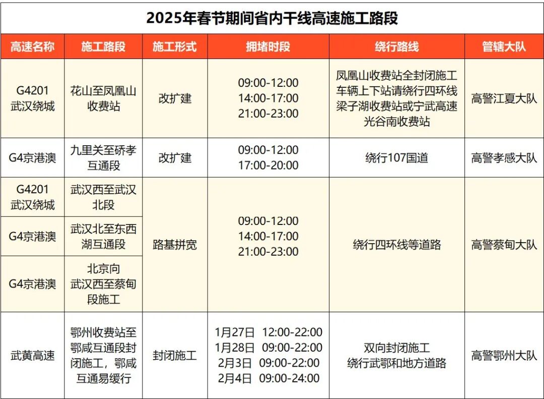 尤其是环绕武汉市周边的路段,还有连接省内重要城市的主要通道,如同沪渝高速、福银高速、京港澳高速湖北段这类,部分路段通行时压力极大。在此建议您事前查看导航,错开高峰出行,像是选择在清晨8点之前或者晚间22点之后出发。