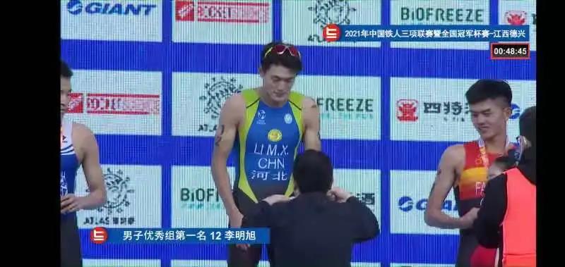 在4月10日,于江西德兴市举办的2021年中国铁人三项联赛现场,北体大2018级学生李明旭冲过了终点线,以1小时53分17秒的成绩获得男子优秀组冠军,此次比赛是游泳、自行车、跑步三项连贯的比拼,他在最后跑步阶段展现出了绝对统治力。