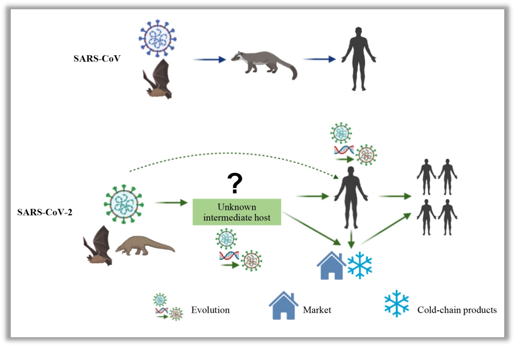 过去五年间,石正丽团队与老挝学者联合采样,石正丽团队与柬埔寨学者联合采样,石正丽团队与缅甸学者联合采样,石正丽团队与泰国学者联合采样,发现东南亚菊头蝠所携带的多种冠状病毒,这些冠状病毒的刺突蛋白与人ACE2受体的结合能力相当之强。部分毒株的RBD区域单纯只需1到2个氨基酸进行突变便能够直接感染人细胞。当下这些病毒仅仅是在蝙蝠的圈子当中进行传播,然而养殖场存在将之带到人群里的可能性,开山伐木存在将之带到人群里的可能性,野生动物贸易存在将之带到人群里的可能性。
