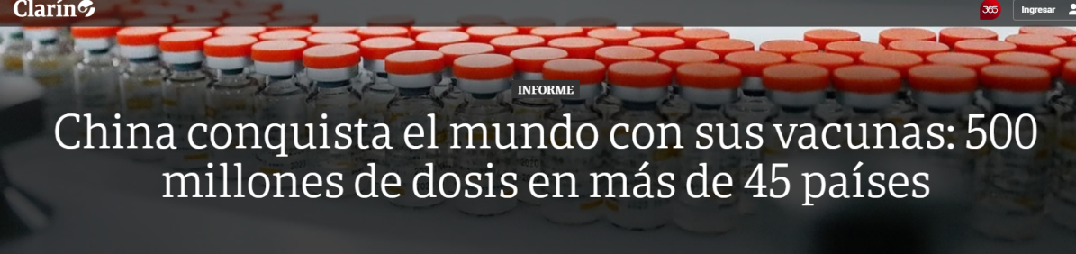 3月1日,智利《三点钟报》有一篇报道,其标题十分坦率,为《拉丁美洲转向中国和俄罗斯寻求疫苗》。该报道援引专家所言,一些西方大国在拉美订单方面常常违约,而中国将疫苗视作全球公共产品。这并非外交用语,乃是实实在在的出货记载。