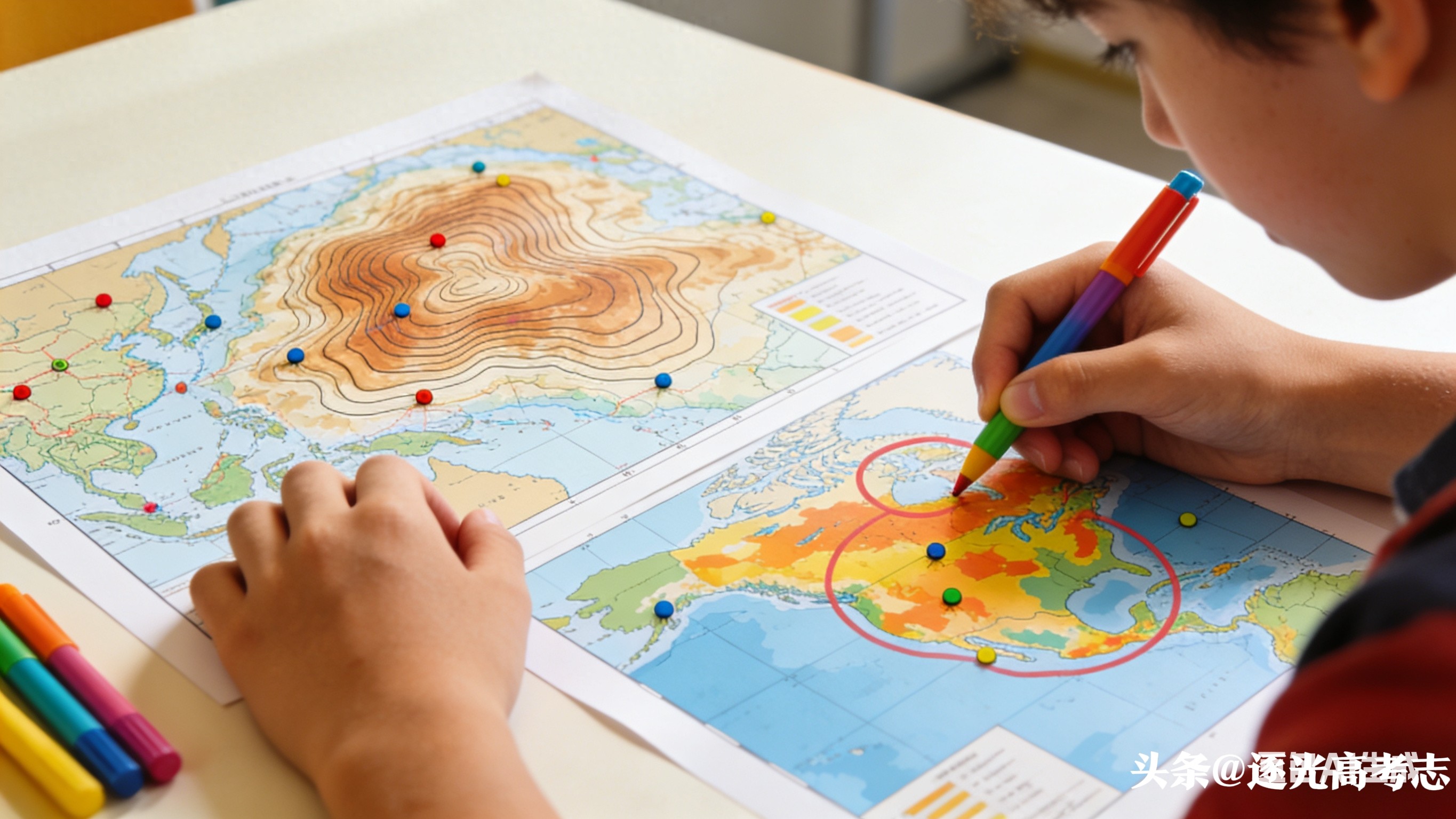 不要觉得题做得越来越多成绩就变越好,精准地去打击薄弱的点才是提分的关键所在。把过去三年的真题拿出来,按照气候判读、地形成因、区域发展这些类别分好它。你就会发现高频考点就仅仅是那么几个,集中精力去攻克它们效率是最高的。