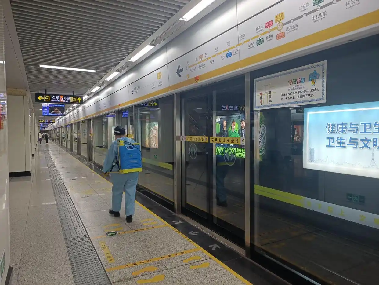 早上7点半,记者于城郊线双湖大道站上车朝着市区行进,车厢内已然坐满了人。抵达2号线花寨站,人拥挤至如罐头一般,上下车皆须用力往内挤。更具夸张意味的是,车行驶到南五里堡站时,记者的手机忽然没了信号,连微信都无法发出,由此可见人流量究竟有多大。尽管郑州地铁和公交自7日晚起不再查验健康码,但乘客们依旧自觉佩戴着口罩,工作人员也在东大街站忙于消毒。