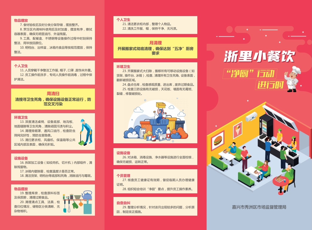 嘉兴服务区依据《小餐饮净厨“五净”“三清”指南》这个蓝本,把抽象的食品安全要求转变为能够执行的具体规范,“五净”所要达成的要求是,场所、设施、工具、食材以及人员都得保持清洁,“三清”所做的是,建构起日清洁、周清扫、月清理这样的常态化机制。