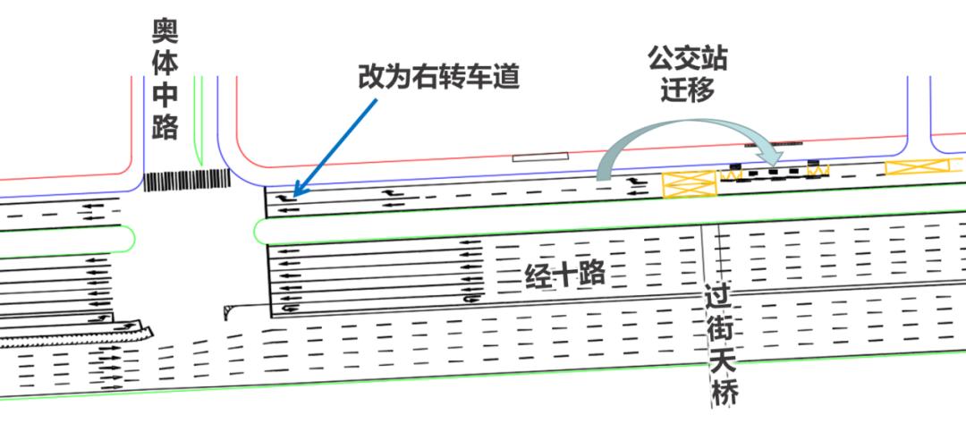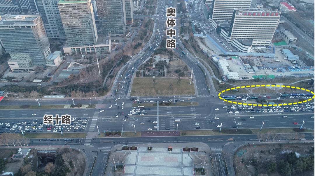 经十路跟奥体西路的路口处,早高峰提早来临且久久不消散,原本7点至8点半的信号灯控制根本不顶用,调研组把市民巡访团团长辛安邀请到现场,直接将灯控时段延长至9点,奥体中路东出口的辅道那里,公交站距离路口过于近,公交车进站以及出站把右转车道给堵死了,调研组经过测算之后把公交站朝东挪动了70米,辅道最外侧的车道从“直行加右转”改成“右转专用”,如此一来右转效率就提升上来了。